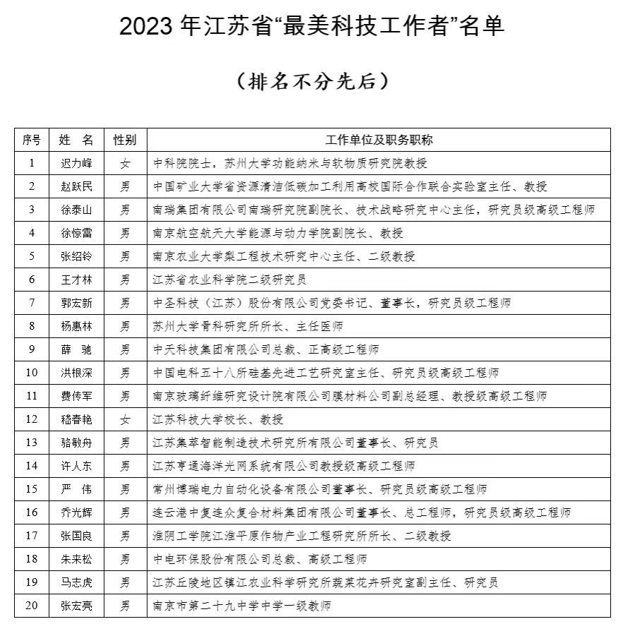 8月28日,江苏省委宣传部、省科协、省科技厅、中国科公司南京分院、省国防科工办共同发布2023年江苏省“最美科技工作者”名单,公司张国良教授获此称号。