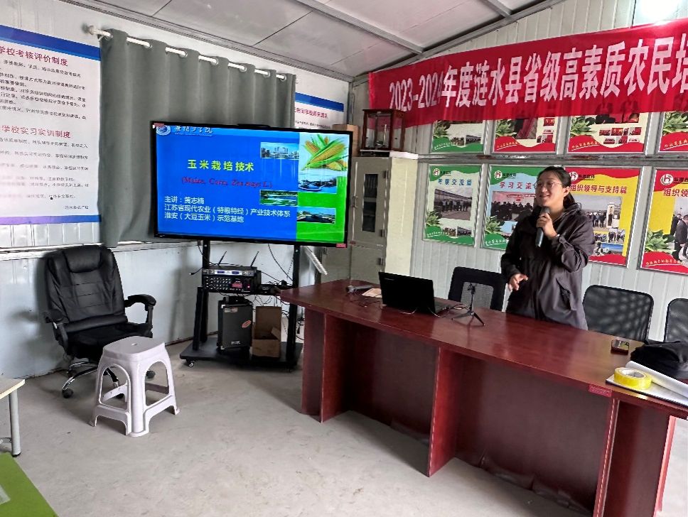 江苏现代农业(特粮特经)产业技术体系淮安推广示范基地为提高当地农民的玉米种植技术,于4月23日在淮安市涟水县高素质农民培训班内,基地主任黄志楠副教授为当地农民培训玉米栽培新技术。此次培训吸引了大量农民及农业大户的热情参与。