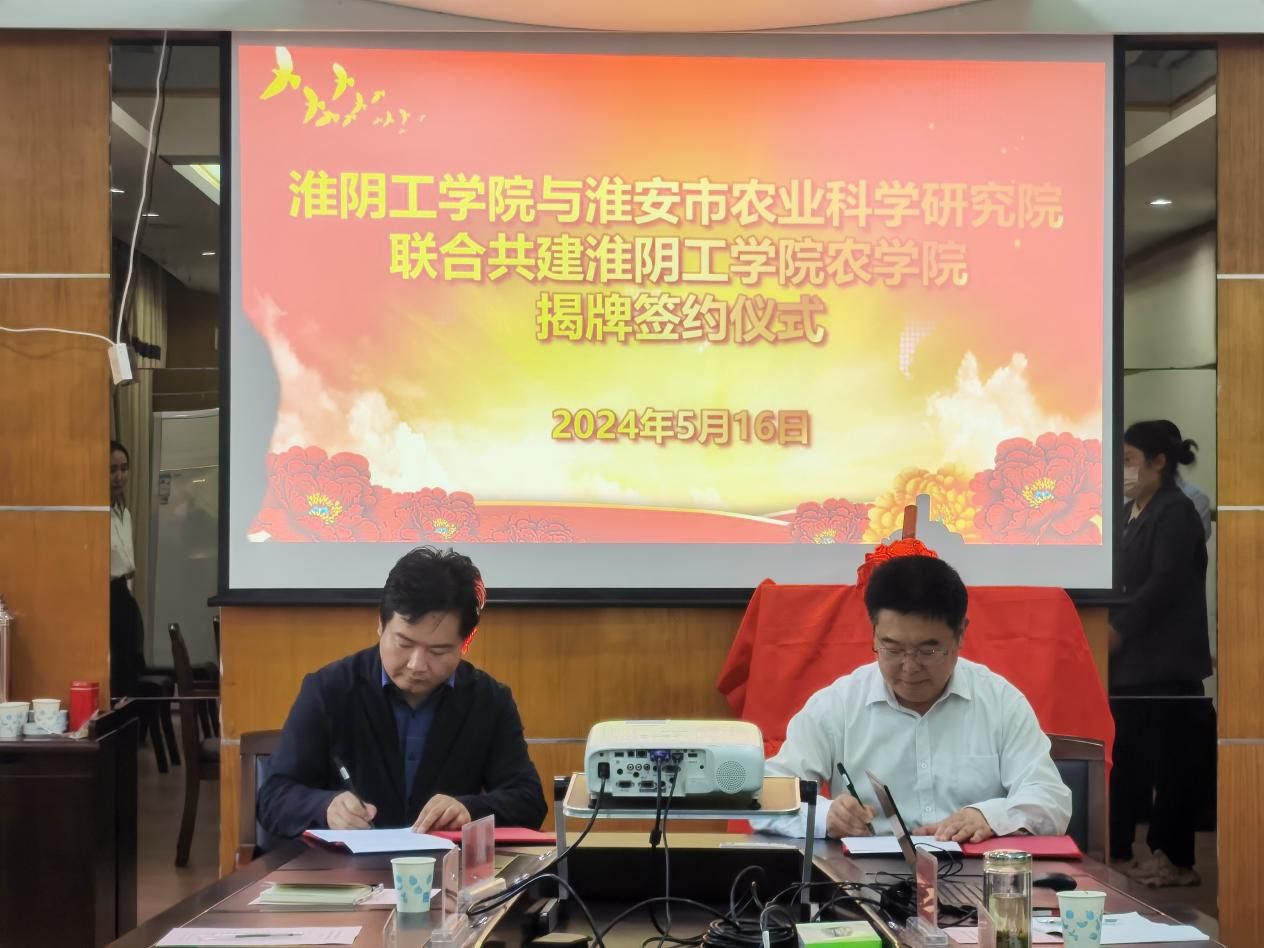 5月16日下午,公司与淮安市农业科学研究院联合共建太阳成集团122ccvip农公司揭牌签约仪式在淮安市农业科学研究院科研创新基地举行。党委副书记、董事长郑锋,党委常委、副董事长高尚兵,淮安市农业科学研究公司党委书记、经理彭杰,淮安市农业科学研究公司党委副书记章安康出席签约仪式。
