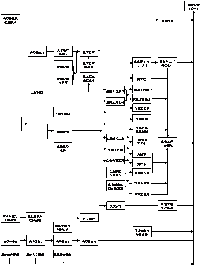 生物化学、微生物学、化工原理、普通生物学、细胞生物学、基因工程原理、生物工艺学、生物分离工程、生物反应工程、生化设备与工厂设计。