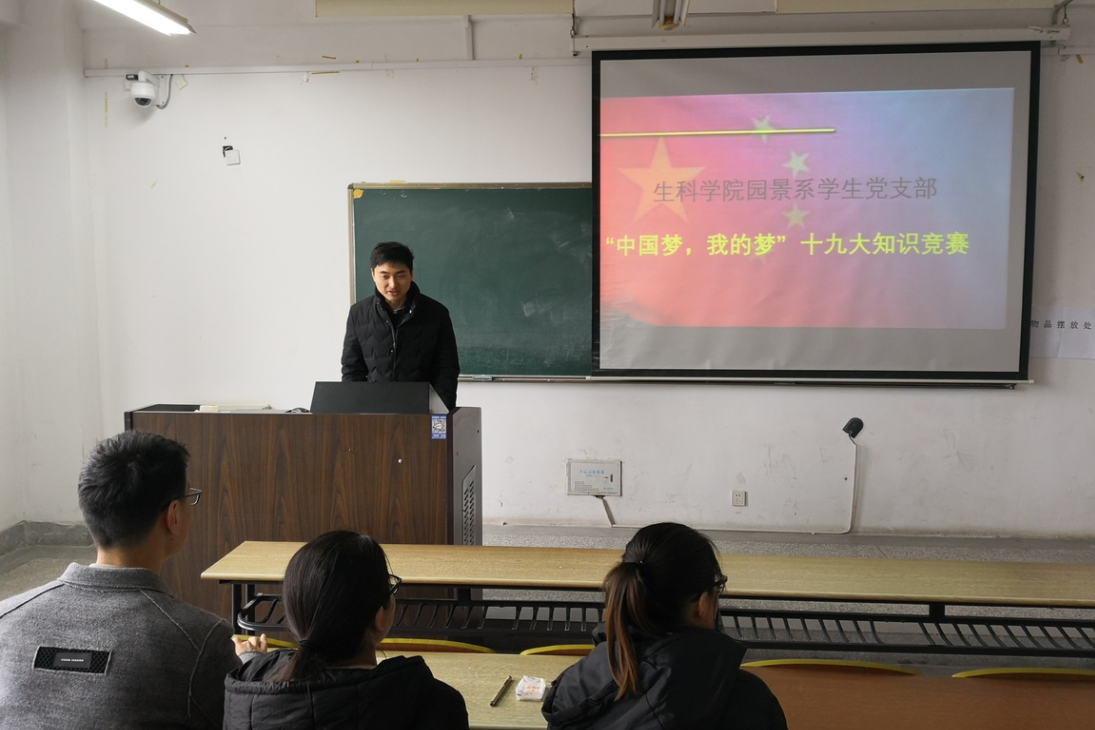 党的十九大会议召开以后,全国上下掀起学习贯彻十九大精神热潮,为了让员工党员深入领会把握党的十九大精神,2017年11月26日早9:00,生科园景系党支部在22#204举办“中国梦,我的梦”十九大知识竞赛,比赛由党支部书记倪克垒老师主持。