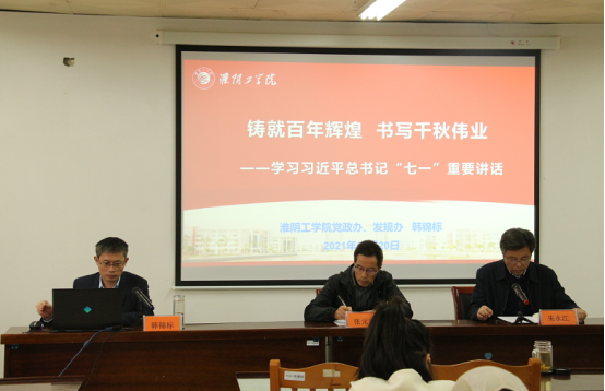 为深入学习贯彻习近平总书记在庆祝中国共产党成立100周年大会上的重要讲话精神,强化政治引领,持续推进党史学习教育提质增效、走深走实,10月20日下午,校学习贯彻习近平总书记“七一”重要讲话精神宣讲团成员、公司党政办主任韩锦标教授来公司开展专题宣讲。公司党史学习教育第四督导组组长、原人文公司党委张元华书记同时来公司指导。公司党委书记朱永江主持会议,全体教职工参加了学习。