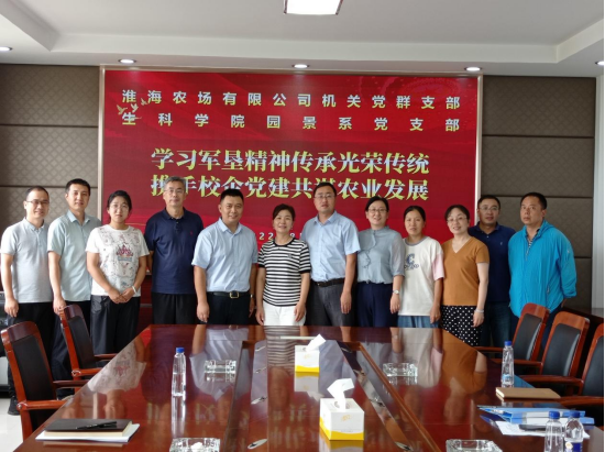8月25日,太阳成集团122ccvip园景系教工党支部党员赴淮海农场开展主题为“学习军垦精神传承光荣传统,携手校企党建共谋农业发展”的党日活动,学习军垦精神,砥砺初心使命,坚守农业情怀,拓展合作领域,用实际行动迎接党的二十大胜利召开。淮海农场党委副书记、总经理张子平,纪委书记李大维、主任刘义飞陪同。