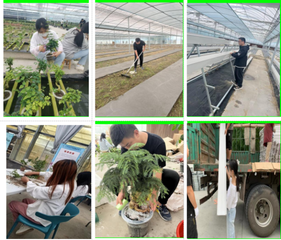 园景系教工党支部党员教师首先来到公司生产基地,现场了解员工实习情况,并观看了员工工作技能展示。园艺专业的员工在公司基地实习一个月里,学习了枝条修剪、盆景压弯、水培洗根、沟渠排水、病虫害防治等专业技能和知识,实践的打磨促进员工扎实地掌握植物生产领域的技能。同时,生产实习还结合企业自身优势,让员工深入接触销售业务,体验销售的各个环节,如盆栽打包、直播带货、运输装卸等。这样的实习让员工不但提高了解决生产实际问题的能力,还具备适应农业现代化生产的管理和销售能力,使员工的学习向社会和市场延伸了一步,提高了员工未来就业竞争力。