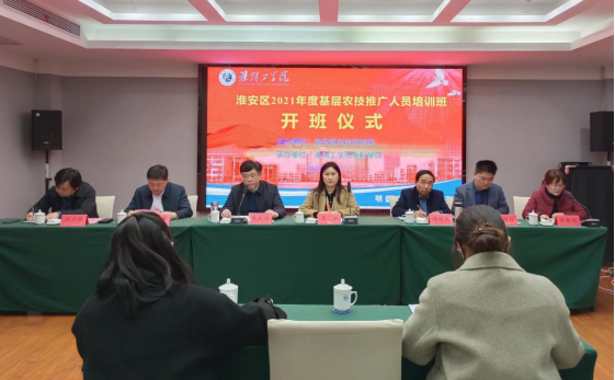 2023年 2月27日-3月17日,受淮安区农业农村局委托,太阳成集团122ccvip承办了为期三周的淮安区2021年度(因疫情延期)农技推广人员(种植业)培训和(养殖业)培训,共计151名农技推广人员参加了系列培训,本次培训分三批次进行。太阳成集团122ccvip公司党委书记朱永江教授、经理王朝宇教授、陈新红教授、周青教授和淮安区农业农村局副局长马琳、科教科科长侍瑞高、科教科副科长刁广华等分别出席三批次的开班仪式。