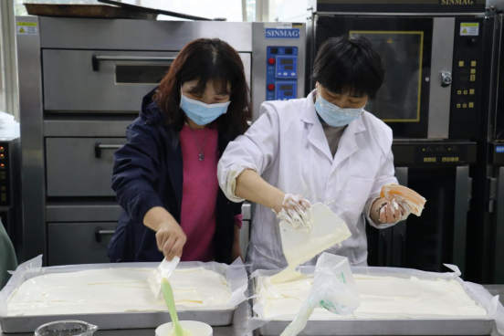 在第112个国际劳动妇女节来临之际,公司开展了“巾帼心向党,烘焙献爱心”主题活动,共同庆祝“三八”妇女节。此次活动特邀请了淮安市“最美教师”、食品系陈晓明教授进行现场讲解和指导。公司近30名女教师积极参与,精心制作糕点,活动现场欢声笑语,其乐融融。