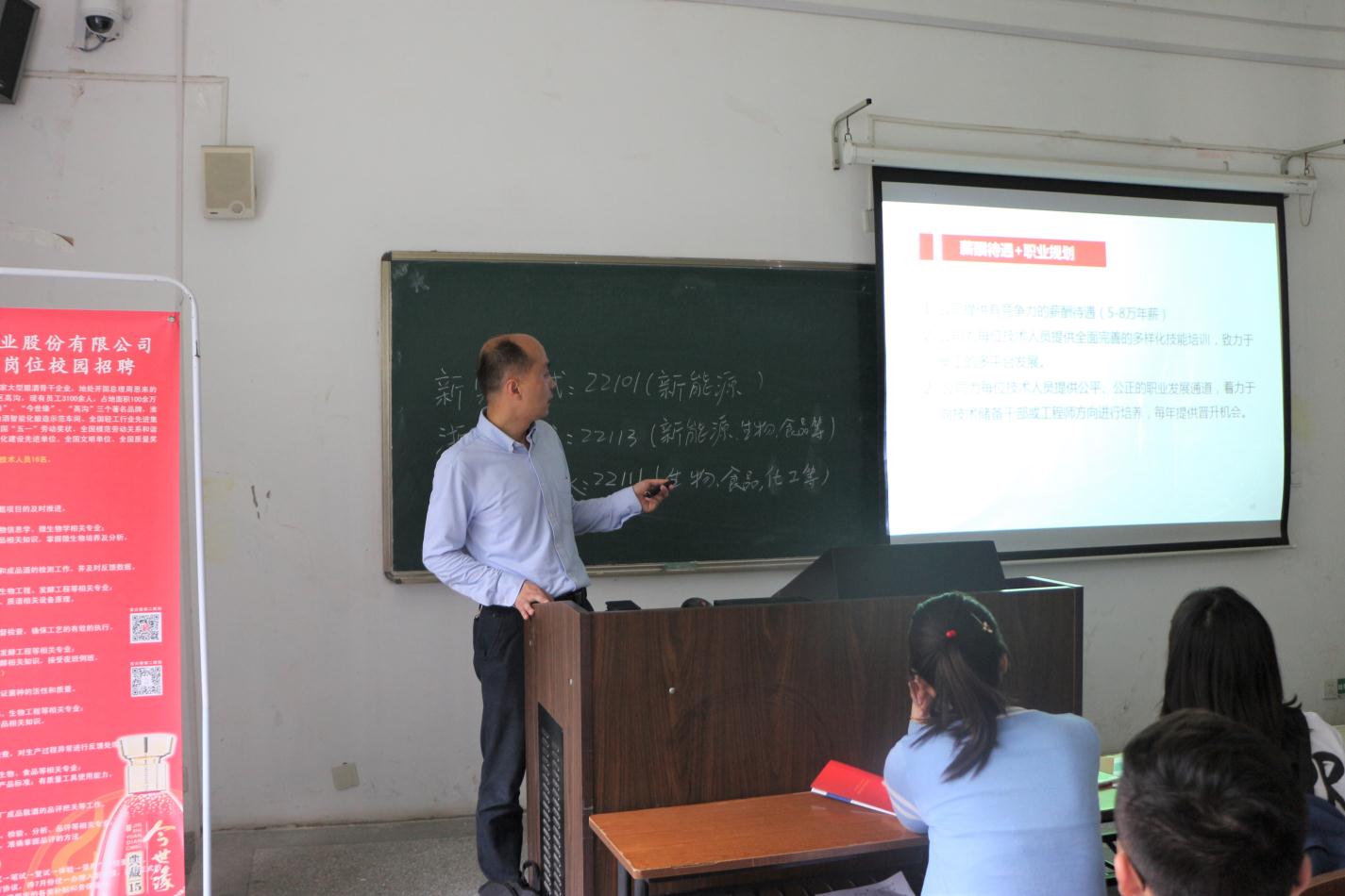 (江苏今世缘酒业股份有限公司人力资源部张明星副经理进行招聘宣讲)