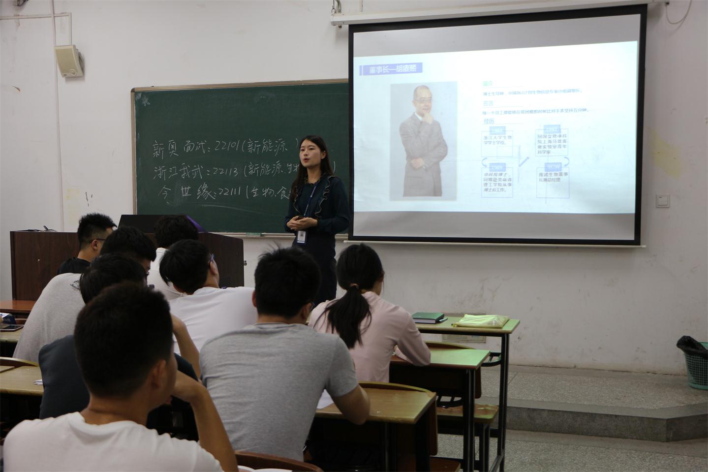 (江苏今世缘酒业股份有限公司生物酿酒技术研究院孙莹副经理进行招聘宣讲)