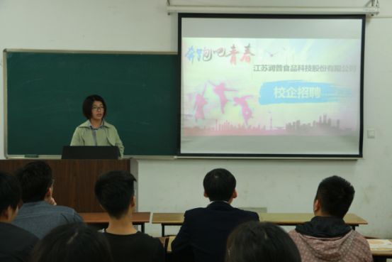 江苏润普食品科技股份有限公司于2004年11月在连云港成立,公司主要经营食品添加剂。在招聘会中,专员围绕企业文化、企业远景、企业规模、产品特色开展宣传活动,在互动环节中,招聘专员向同学们分发了公司周边产品,并对同学们提出的问题进行了详细的解答,有意向的同学可以现场递交或者邮箱发送简历。