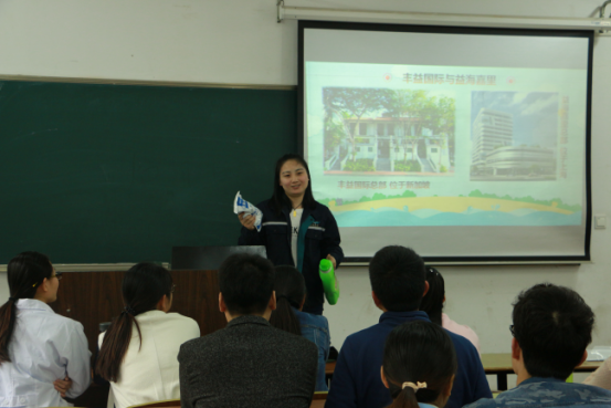 益海嘉里是新加坡丰益国际有限公司在华投资的以粮油加工、种业开发、仓储物流、内外贸易、油脂化工、大豆蛋白于一体的多元化侨资企业。招聘会伊始,该企业的招聘专员向同学们播放了集团的宣传短片。重点介绍了招聘职位、岗位职责、住宿环境、员工福利、薪资待遇、职业发展等。