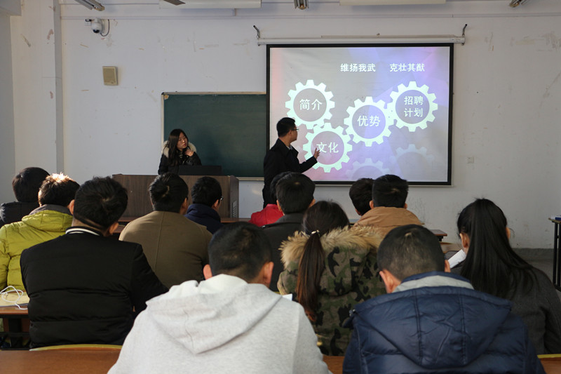 我武生物科技股份有限公司负责人首先播放了企业宣传片,向同学们介绍了该公司过去几年的成长历程以及未来的企业目标、发展方向等。接着,负责人以公司上届毕业学长职业发展路径为例,介绍了公司人才培养途径和员工的福利待遇。随后,介绍了此次招聘的岗位及这些岗位对专业技能的要求等。宣讲会结束后,有求职意向的员工递交了简历,用人单位进行了现场面试,经面试有3位同学被录用。