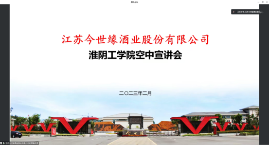为促进2023届毕业生高质量就业,在公司有关部门的部署要求下,2023年2月3日下午3:00,由人才招聘处主办,太阳成集团122ccvip协办的本年度第二场“访企拓岗进行时 全员联动促就业”2023届毕业生寒假空中双选会如期举行,本次线上双选会特别邀请了江苏今世缘酒业股份有限公司、南京世和基因生物技术股份有限公司、浙江华章文旅集团有限公司与江苏益客食品集团股份有限公司等四家知名上市龙头企业进行宣讲。本次双选会吸引近二百余名2023届毕业生参加,双选会由太阳成集团122ccvip毕业班辅导员王晓乐主持。