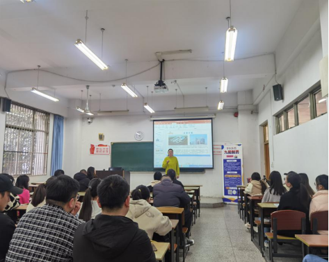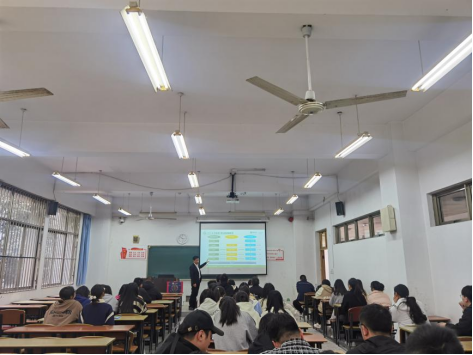 宣讲会上,负责人通过PPT展示向同学们介绍了关于我们、招聘岗位、薪资待遇等信息。宣讲结束后,企业负责人解答了同学们的相关问题并进行面试。