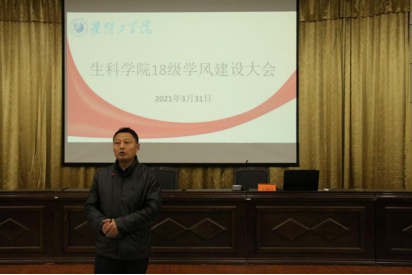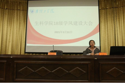 王晓乐老师首先强调疫情常态化防控员工外出注意事项,接着从人身安全、财产安全、宿舍安全三个方面强调了安全教育和管理;最后,具体分析了2018级学业预警情况和创新分获得方法。