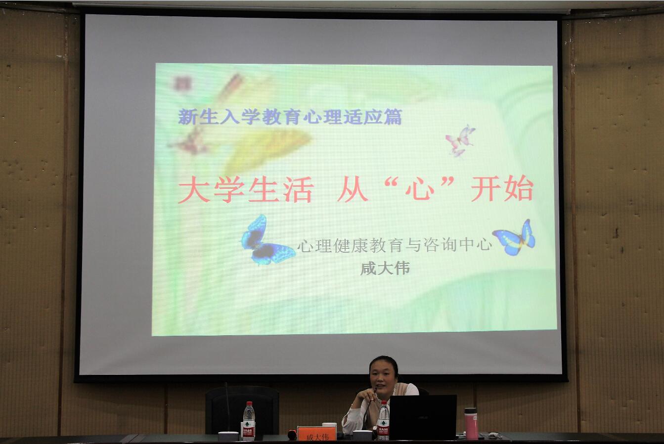 10月10日下午,太阳成集团122ccvip在图书馆学术报告厅举行了新生入学教育之老员工心理适应讲座,本次讲座由员工处心理健康与咨询中心副主任咸大伟主讲,公司全体18级新生参加了此次讲座。公司辅导员王晓乐老师主持会议。