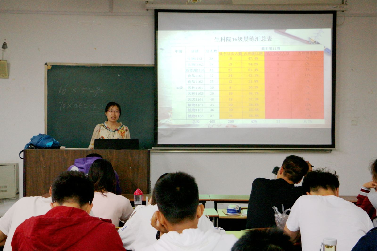 王明霞老师通报了2017年公司考研工作情况,她结合近三年的考研数据分析了公司学风建设的成效。她还结合开学至今周检月报、督导周报、公司晚自习检查通报等数据,分析了各班级在晨练、宿舍卫生与安全、课堂出勤、晚自习等方面所存在的问题。并强调了晨练、宿舍、晚自习基础管理等常规工作对于员工文明行为养成和优良学风形成的重要意义。王老师指出员工干部是员工中的一面旗帜,希望在座的员工干部在日常的工作学习中能够起到带头作用,做好辅导员班主任的得力助手,在律己的同时做到督促好身边的同学,发挥员工干部的榜样示范作用。