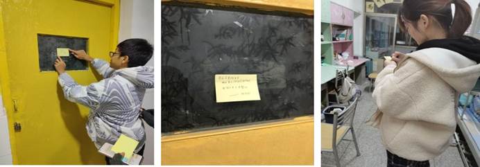 查寝同学分组对全院宿舍开展检查。首先检查宿舍内务卫生和寝室内违禁电器使用与否,对有人的宿舍进行整改指导,无人宿舍则由相关同学在便利贴上写好相关宿舍整改要求并贴在相关宿舍门上。大部分宿舍相对较为整洁,良好的宿舍环境不仅为同学创造了整洁舒适的学习生活环境,同时也减少了安全隐患。