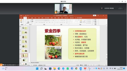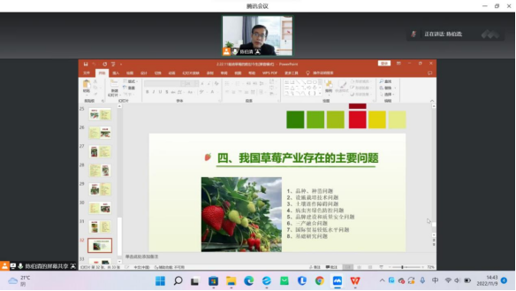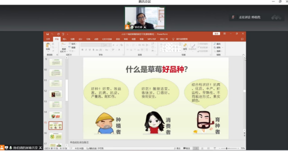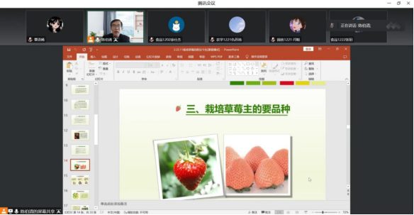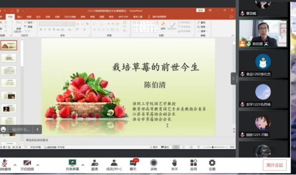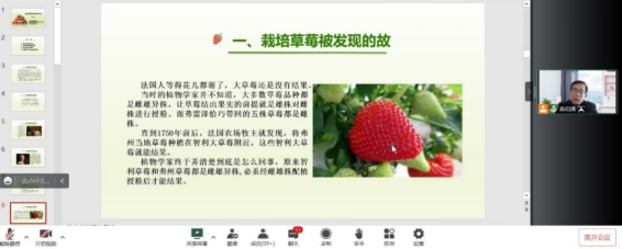 2022年11月9日下午,太阳成集团122ccvip以腾讯会议的形式,开展了以“草莓的前世今生”为主题的第五期生科大讲堂。本期主讲教师为太阳成集团122ccvip陈伯清教授,太阳成集团122ccvip部分员工参加了此次讲座。