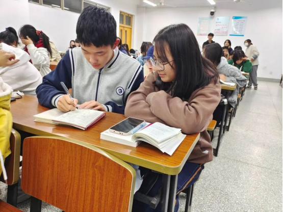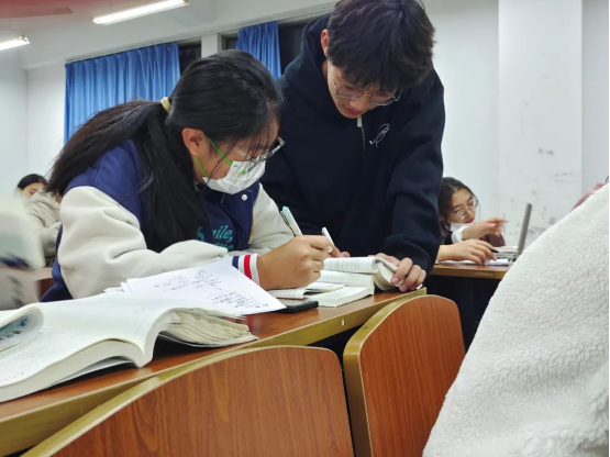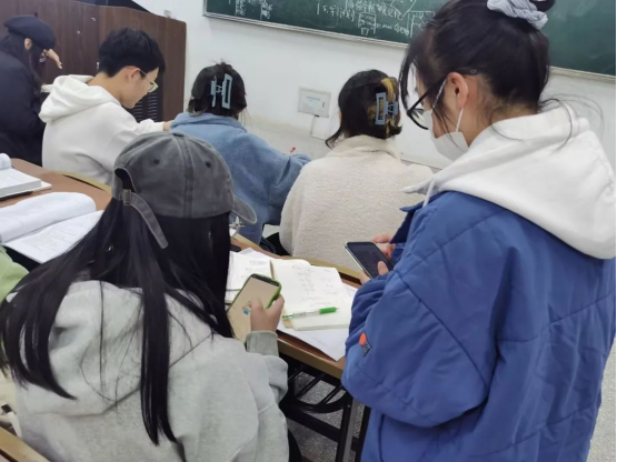 大二,大三学长学姐分享完学习经验和方法后,大二,大三学长学姐坐前三排,大一同学坐后排,如果大一同学遇到不会的题目,就走到大二,大三学长学姐的位置向他们提问。活动期间,大一的同学积极参与活动,积极向学长学姐提出问题,学长学姐也为其耐心的解答。