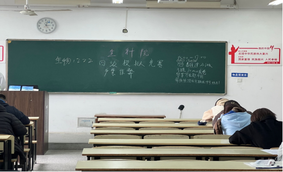 此次四级模拟竞赛由学创中心举办开展,前期工作包括统计各班参考人数,安排考场以及考试时间。每个考场由两名同学监考,并负责维持考场秩序,本次四级模拟竞赛顺利开展。