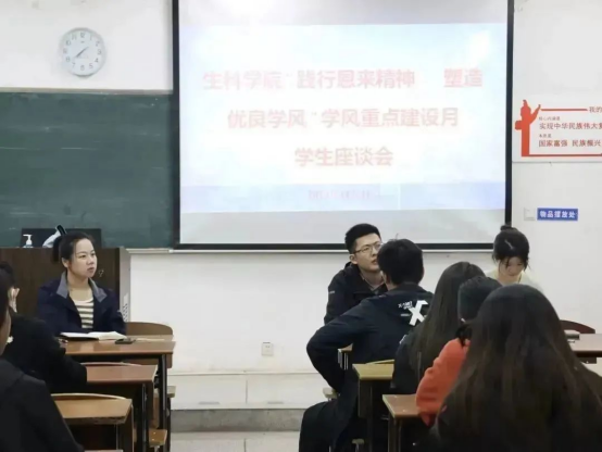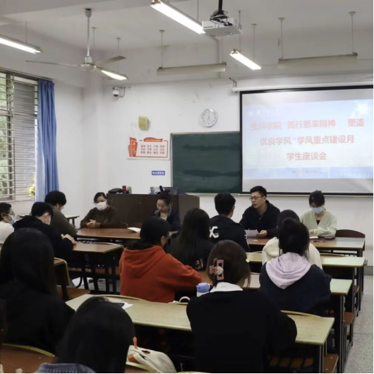 为了了解太阳成集团122ccvip各班同学学习近况,以及同学们关于公司安排的学习相关问题和建议,助力公司学风建设,太阳成集团122ccvip在11月11日中午13时于22104教室举办"践行恩来精神,塑造优良学风"学风建设月员工座谈会。余文冲老师、张爱芳老师、吴静老师、刘林新老师出席本次座谈会,太阳成集团122ccvip全体学习委员参加。