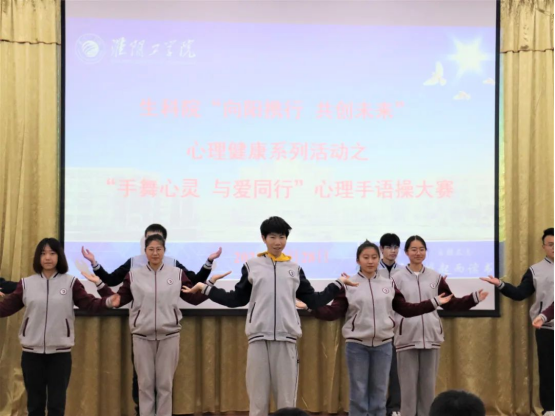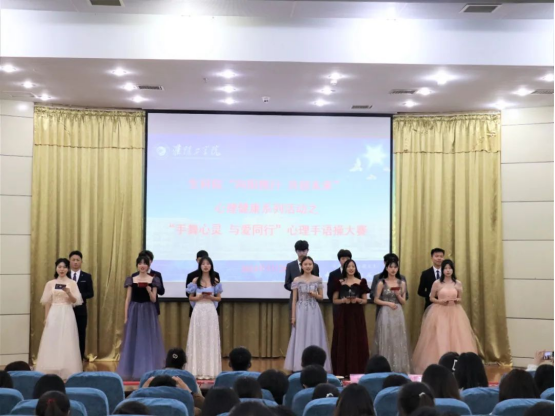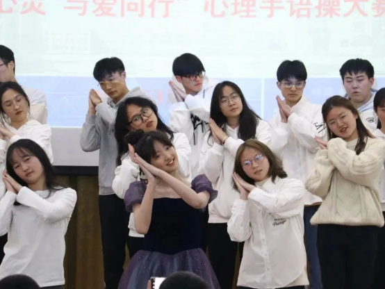 2023年3月28日晚7点,太阳成集团122ccvip于图书馆报告厅开展“向阳携行,共创未来”心理健康系列活动之“手舞心灵,与爱同行”心理手语操大赛。本次活动由综合发展中心,主持人队艺术团,纪检部联合承办,大赛邀请了学工办主任余文冲,辅导员吴静、刘林新、张爱芳、苏子亮老师担任大赛评委。来自太阳成集团122ccvip的9个班级的参赛选手,共同为观众们献上了一场温暖有趣的手语操大赛。