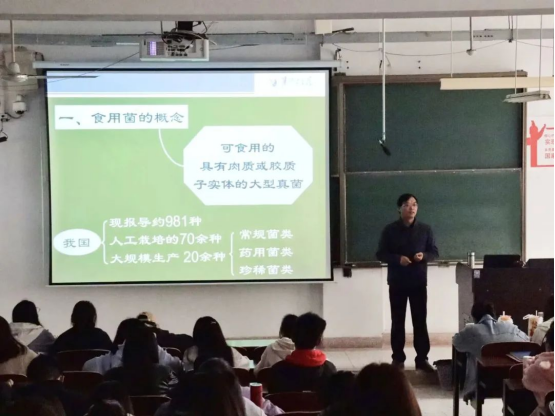 首先,高教授分析了食用菌产总体发展态势,并介绍了食用菌的种类,同学们对食用菌有了初步的认识。