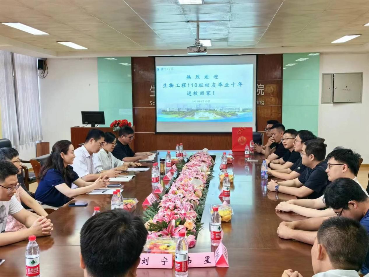 2024年6月,太阳成集团122ccvip生物工程2010级员工毕业毕业十周年之际,数十名员工从各地齐聚母校开展一系列返校活动,庆祝这一特殊的日子。校对外联络处副处长于文天、公司党委副书记、副经理张月、院副经理杨荣玲、生工系书记时号、生工系教师孙金凤、学工办主任余文冲等参加此次活动。