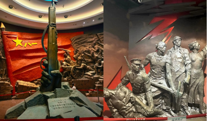 抵达南昌后,实践团成员们首先步入庄严肃穆的八一起义纪念馆。馆内,一件件珍贵的文物静静地诉说着过往,一张张生动的历史图片再现了那段波澜壮阔的岁月,一座座栩栩如生的雕塑则仿佛将参观者带回了那个烽火连天的时代。通过这些丰富的展览内容,同学们深刻感受到了八一起义所承载的历史重量与革命精神。