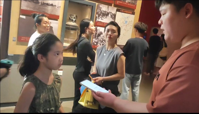为了解“红色摇篮”展厅爱国主义的教育效果,实践团队对青少年展开采访。这些小“同志”们,用他们稚嫩而真诚的言语,展现了他们对祖国的热爱。其中一位小姑娘说:“最让我印象深刻的是,我们虽然只有装备落后的军队,但是最终打败了敌人!”她真挚的话语全然是对党对解放军军人的自豪之情,也体现了当下爱国主义教育的丰硕成果。