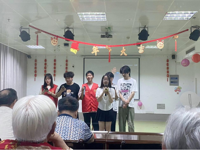 活动中,音乐成为了连接心与心的桥梁。一曲曲红色经典旋律悠扬响起,不仅唤醒了老人们的美好回忆,更以音乐的力量抚慰心灵,促进了身心健康。老人们在同学们的邀请下,纷纷加入合唱,现场洋溢着温馨与欢乐,展现了跨越年龄的和谐与共鸣。