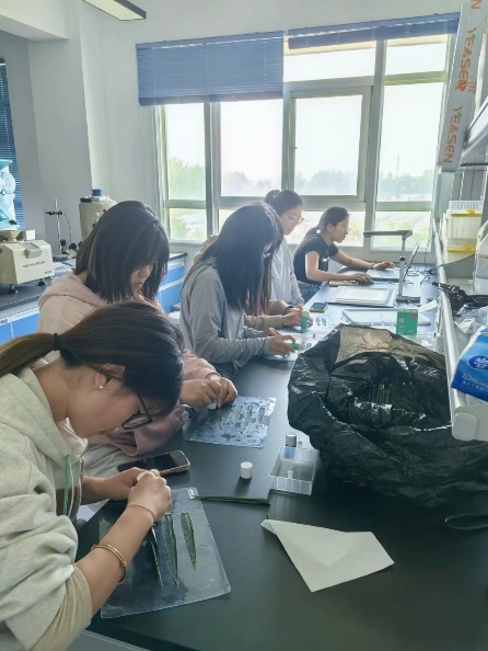 省农科院实训团队深入小麦育种科研一线,完整参与了从病毒接种、人工授粉到数据采集的全流程实践。不仅学习了小麦病害传播机制研究的基础技术,还深化了对植物病理学理论与田间遗传规律的理解。这种"实验室+田间"的复合型训练模式,使同学们对作物病害防控和遗传育种有了更立体的认知。