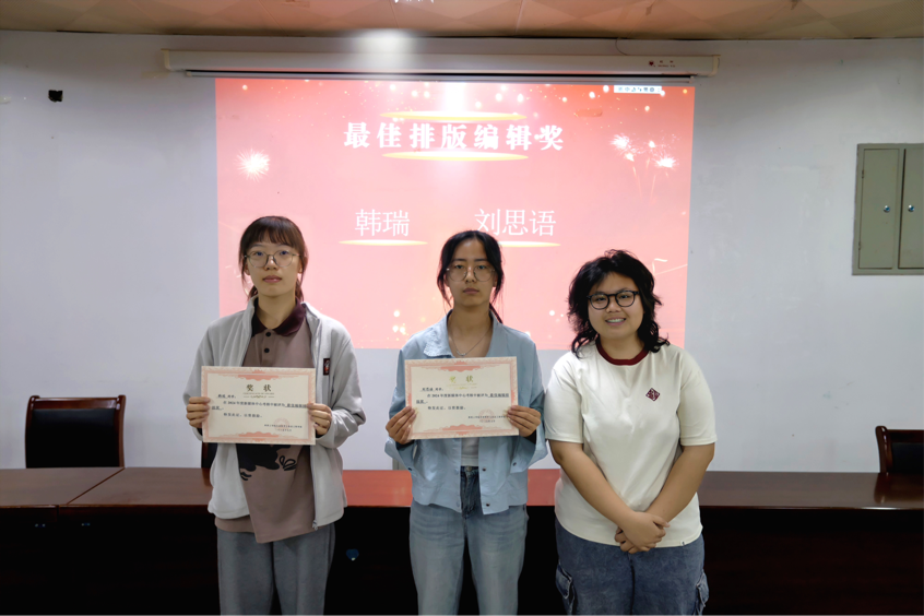 会议伊始,新媒体中心副主任陈俏洁作了上一阶段工作总结报告。随后,会议举行了隆重的表彰仪式。公司党委副书记张月、指导老师苏子亮,以及往届优秀骨干代表杨蓝婷、王婉清和现任新媒体中心主任杨蓉共同为获奖同学颁奖。本次共评选出“最佳部员”“最佳文稿”“最佳摄影”“最佳编辑”四个奖项,八位表现突出的同学获此殊荣。现场掌声不断,气氛热烈。