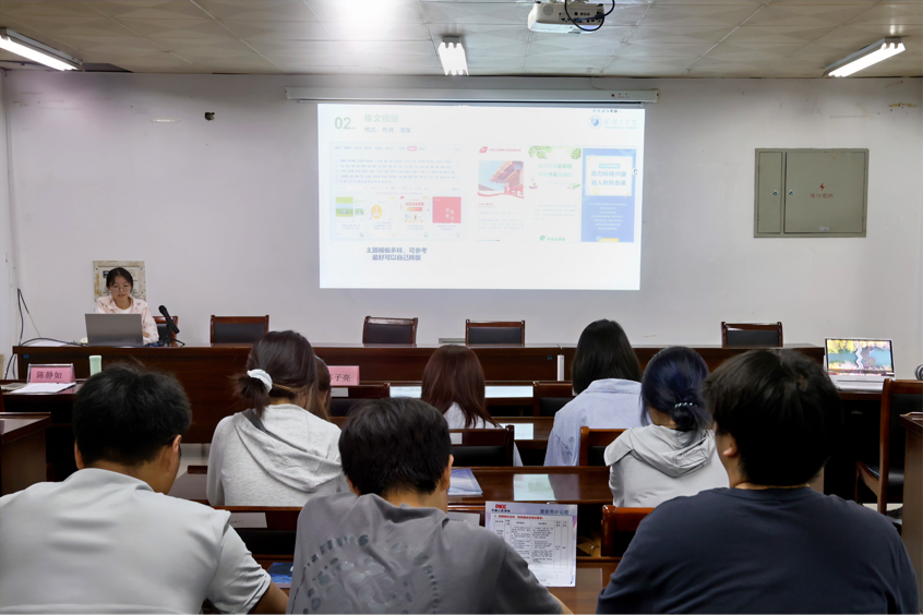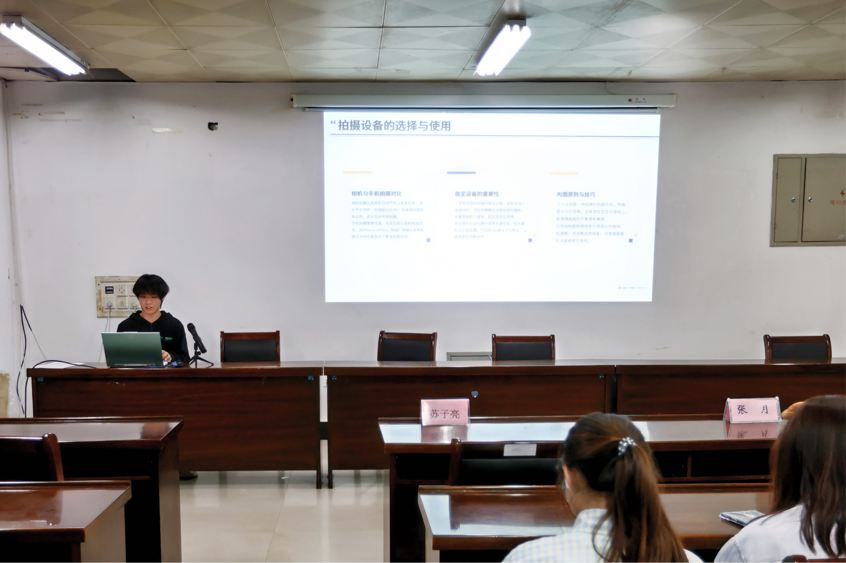 表彰结束后,媒体技能培训会有序展开。由校融媒体中心谭欣悦、王禹同、覃盛、陈静如四位同学分别对新闻撰写、图像传达、视频剪辑、微信排版等多项内容进行培训,为新媒体中心带来更多专业知识与实用技巧,促进新媒体中心的技能提升。