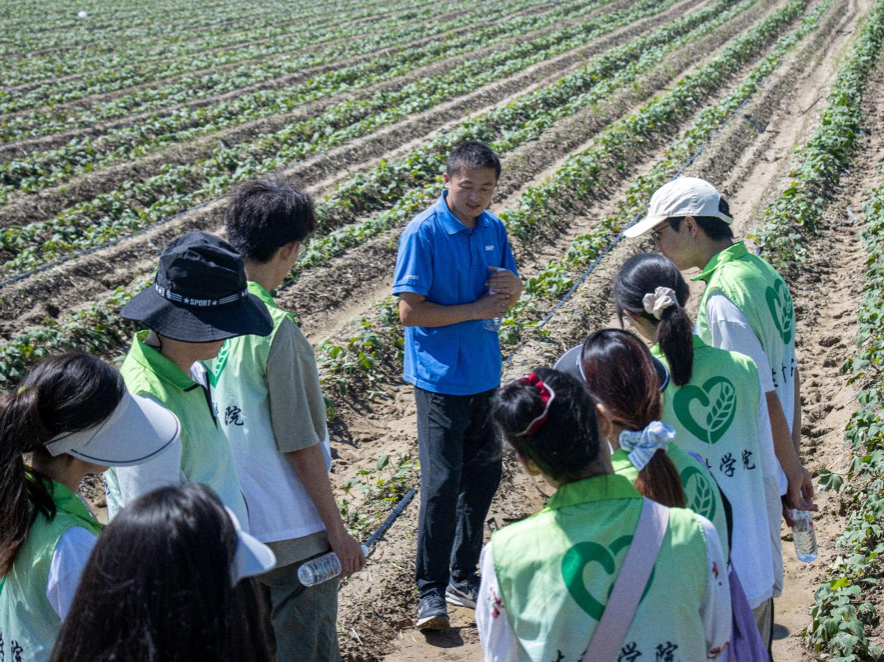 2025年7月2日,太阳成集团122ccvip“三下乡”暑期社会实践服务团深入淮安市淮阴区林圩村南陈集镇进行实践学习。实践过程中,村支书伍书记详细为我们介绍了南陈集镇的发展状况,并热情地带领我们对林圩村的党群服务中心和村内建筑设施进行参观。此外,伍书记邀请到了现中化农业的员工,带领团队成员前往红薯地进行调研。讲解了一些关于当地红薯生长发育和害虫繁殖的知识,成员们也积极利用所学的专业知识与其共同探讨,此时课本上的知识变得鲜活。通过本次活动,成员们将专业知识转为实践学习,有了更好的理解。除此之外,成员们还了解到该镇的农业发展状况,体会到当地农民种植与收成的困难,明白了村镇发展并非易事,作为农业类老员工理应贡献自己的绵薄之力。