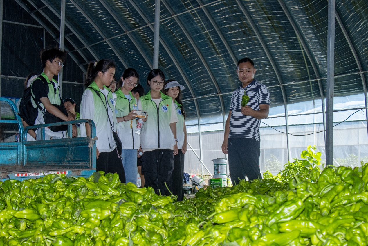 在辣树村现代农业产业园,团队成员深入辣椒种植基地,村干部在辣椒田间为我们开展了一场别开生面的“田间课堂”,成员们亲身参与采摘等农事操作,穿梭在硕果累累的辣椒丛中,触摸着现代化农业设施,倾听村干部如何带领村民们走上致富之路。通过零距离观察,我们认识到“为人民服务”不是挂在墙上的标语,而是刻在干部心里的座右铭。