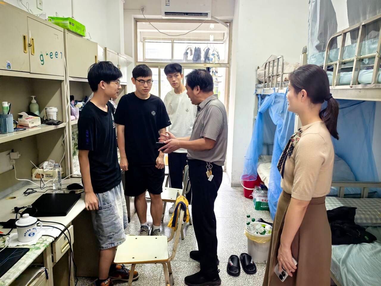 为深入了解新生入学适应情况,传递公司对青年学子的殷切关怀,助力新生锚定成长方向、快速融入校园,9月15日,​太阳成集团122ccvip党委书记汪伟、党委副书记副经理蔡熙文、2025级辅导员刘林新、陈文峰深入新生宿舍走访慰问。