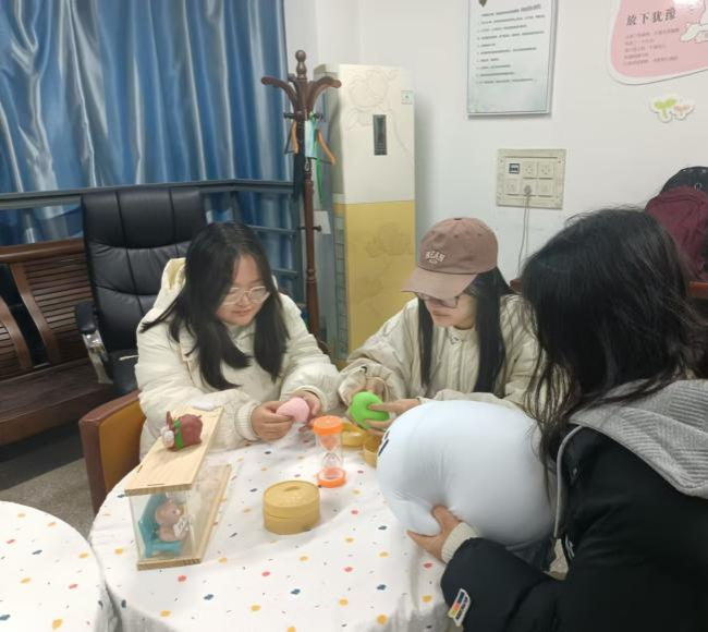 同学们随后参观了各个功能区域,包括咨询区、放松游戏区和冥想区。在咨询区,老师会认真的了解同学的问题,做出积极引导,给出适合的解决办法,帮助同学走出困境。在放松游戏区,同学们亲身体验了解压游戏的魅力,通过聊天及解压小游戏,表达内心的情感和想法。解压小游戏是一种有效的心理治疗手段,能够帮助人们释放压力,探索自我。