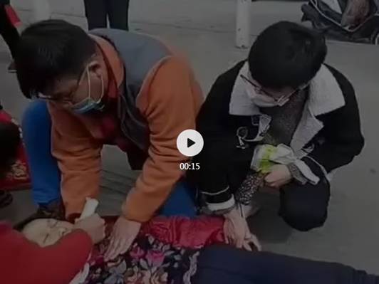 3月9日中午14:00左右,在凤冈县凤凰广场,一位中年妇女晕倒,口吐白沫,生命垂危,王瑞和同行的另外两个年轻人迅速跑到该阿姨身边,他们轮番娴熟地为阿姨做了心肺复苏,见效果不好,同行的一位学医的队友隔着口罩进行了人工呼吸,阿姨才睁开了眼睛,期间王瑞紧紧地握着老人的手,不断地叫她。几分钟过后,老人终于有了些知觉,并把堵在气管的痰咳了出来,老人未完全清醒,接着牙咬住了舌头,嘴角流出血来。王瑞见状便掰开老人牙齿,让她咬住卷纸,以免再咬到舌头。“我一直对老人喊话‘看着我,不用紧张,深呼吸,放松,睁开眼,救护车马上就到了’,对她心理疏导,并观察她的情况,不让她睡着。”王瑞说,等老人渐渐恢复意识后,才把嘴里的卷纸放了下来。