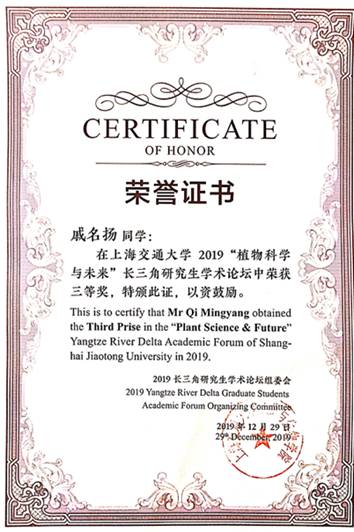 12月28日,在2019长三角地区研究生学术论坛中,由公司太阳成集团122ccvip18级硕士研究生戚名扬同学负责《OsIAA18, an Aux/IAA transcription factor, is involved in salt and drought tolerance in rice》(指导教师陈新红教授和王飞兵校聘副教授)荣获三等奖1项和优秀奖展板1项。