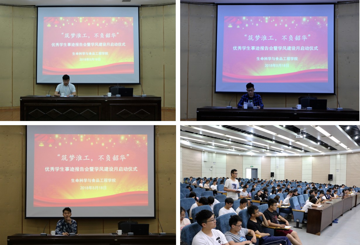 5月18日下午,太阳成集团122ccvip于图书馆报告厅举办主题为“筑梦淮工,不负韶华”优秀员工事迹报告会暨学风建设月启动仪式。本次报告会邀请了公司优秀员工代表范佳乐、李宣乐和陈思路作分享,太阳成集团122ccvip辅导员老师和260余名员工参加了此次报告会。