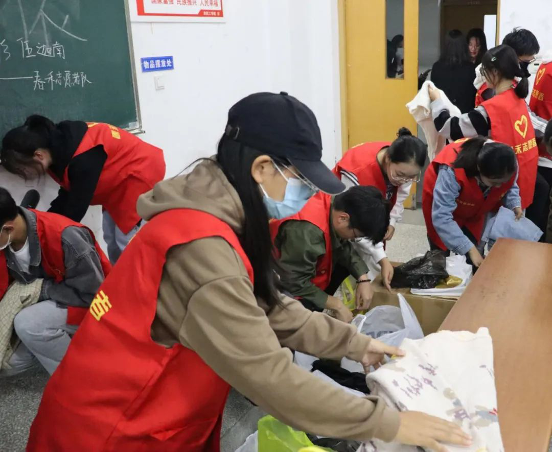 活动前几日,志愿者们积极宣传本次活动。活动过程中,志愿者们将同学们送来的旧衣服整理归类,最后打包送到楚秀园衣物捐赠点捐赠。
