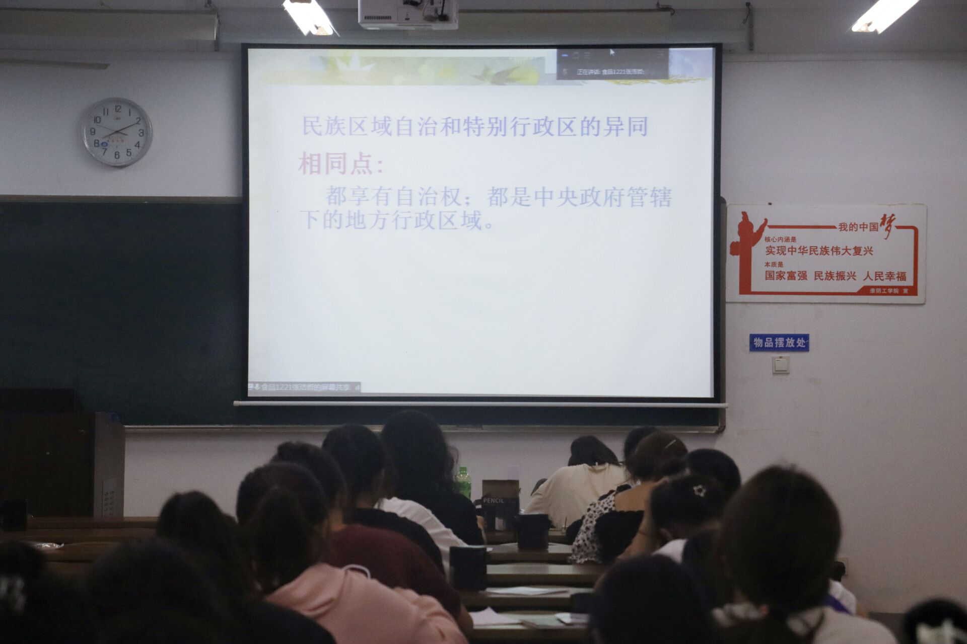 首先,余老师提出了我国的重要政治制度,坚持和完善民族区域自治制度,指出其根源是建立平等团结互助的社会主义新型民族关系,同时,夏书记还介绍了“民族平等,民族团结,民族共同繁荣”的处理民族关系的三大基本原则。