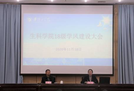 11月18日下午,太阳成集团122ccvip于图书馆报告厅开展了18级学风建设大会。公司党委副书记周定晖和2018级辅导员王晓乐出席会议并讲话,太阳成集团122ccvip18级全体员工参加了此次大会。