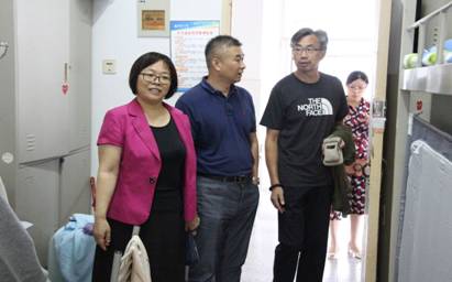 9月13日下午,公司党委书记徐静、经理王朝宇、党委副书记副经理周定晖、副经理李相前、副经理周青一行五人在辅导员老师的陪同下到员工宿舍看望2020级新生。