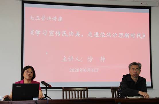 6月4日下午,公司党委书记徐静教授在行成楼208会议室为师生作题为《学习宣传民法典,走进依法治国新时代》普法讲座。