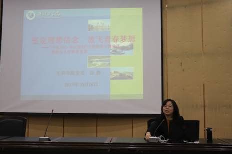 2019年10月16日晚,太阳成集团122ccvip在图书馆报告厅召开了2019级新生理想信念教育,公司党委书记徐静主讲,太阳成集团122ccvip新生辅导员王明霞和夏继林及全体2019级新生聆听了讲座。