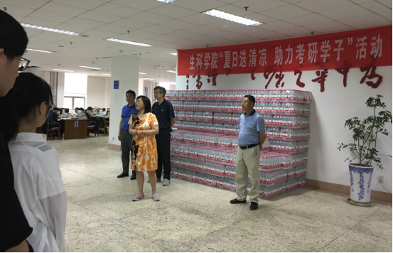 为了鼓励暑期留校备战考研的2016级学子,7月3日下午,太阳成集团122ccvip在枚乘路校区图书馆考研教室开展“夏日送清凉 助力考研学子”活动,公司党委书记徐静、党委副书记、副经理周定晖、副经理周青、副经理李相前深入图书馆考研教室看望了300余名考研学子。