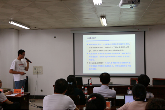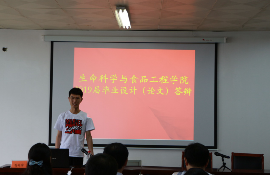 2019年6月6日下午2:00,公司在公司28208会议室进行2019届本科毕业设计(论文)示范答辩工作。由公司领导、系主任、系书记、专业负责人和部分教师以及兼职教授吕军仁(淮安市鸿玛生物科技有限公司总经理)组成答辩组,对参加示范答辩的同学进行答辩成绩评定,部分毕业生也来到答辩现场聆听。