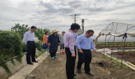 2019年5月28日,江苏省草莓产业技术体系盱眙基地项目组一行6人在基地主任陈伯清教授带领下赴三河农场示范点调研、指导工作。江苏农垦农发有限公司三河分公司赵广福总经理、场长韩树明、示范点相关负责人参加的调研活动。